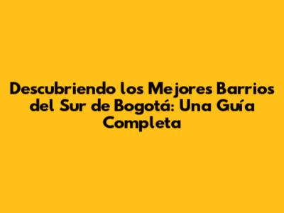 Top 5 Barrios del Sur de Bogotá: Análisis Detallado