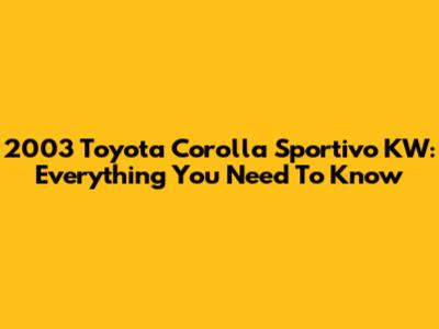 2003 Toyota Corolla Sportivo KW: Everything You Need To Know