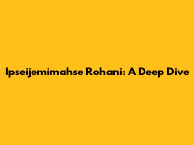 Further Exploration and Resources for Ipseijemimahse Rohani