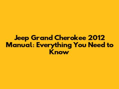 Why You Absolutely Need the Jeep Grand Cherokee 2012 Manual