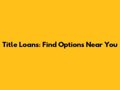 Title Loans: Find Options Near You