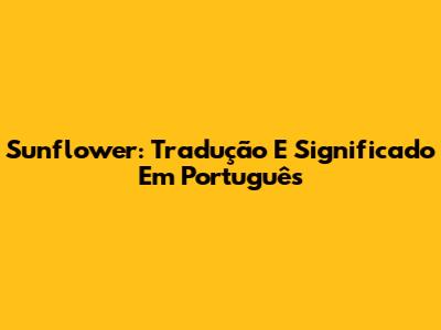 Sunflower: Tradução E Significado Em Português